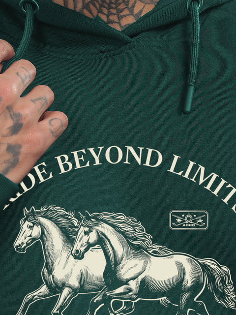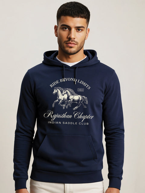 Unleash your adventurous spirit with the Adro Ride Beyond Limits – Rajasthan Chapter Hoodie, inspired by the power and elegance of equestrian culture. Made from premium 320 GSM cotton-poly fleece, it offers exceptional warmth, breathability, and softness. The front graphic features galloping horses and refined typography, celebrating the Indian Saddle Club heritage. Printed using skin-friendly, eco-conscious inks, it ensures lasting vibrancy and safe, irritation-free wear. With its adjustable drawstring hood, ribbed cuffs, and kangaroo pocket, this hoodie delivers both functional comfort and timeless style — perfect for casual outings, travel, or simply embracing the rider’s lifestyle.