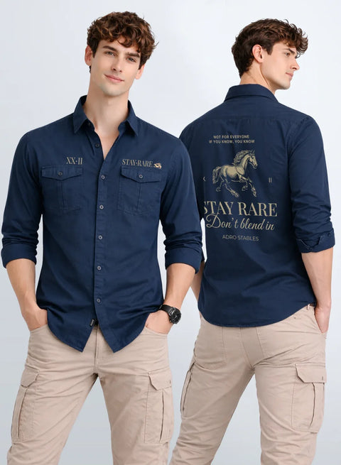 ADRO Mens Cargo Shirts in Regular Fit | Smart Dual Chest Pockets | Military Jacket Style | Navy Shacket Style Cotton Printed Shirt