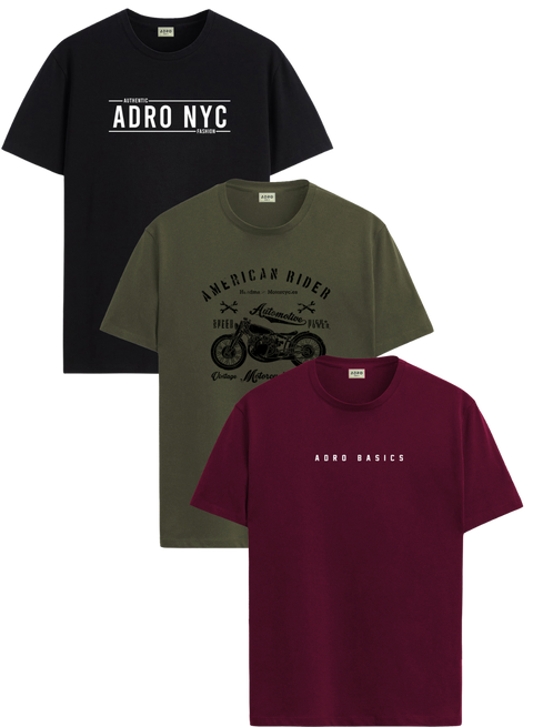 Men’s Cotton T-Shirt Combo Pack of 3 | Regular Fit | ADRO Basics