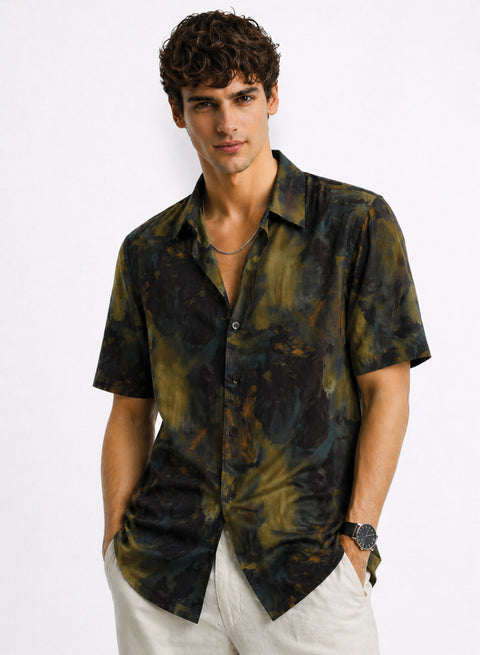 Elevate your summer wardrobe with the Olive Eclipse Abstract Resort Shirt. Designed with an artistic abstract print in deep olive and charcoal tones, this shirt delivers a refined statement while staying versatile enough for everyday wear. Crafted for breathable comfort and effortless drape, it’s your go-to for vacations, evenings out, and elevated casual dressing.