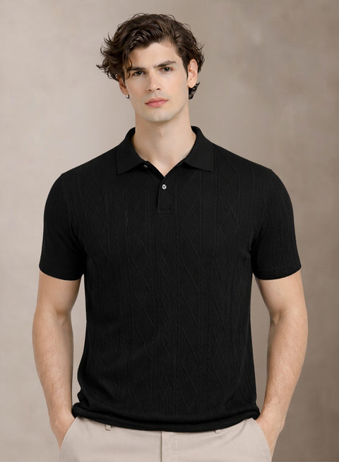 Adro Men’s Flat Knit Polo T-Shirt | Premium Textured Short Sleeve Polo Tshirt | Soft Stretch Fabric | Smart Black Casual T shirt