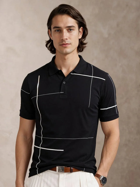 Adro Cotton Polo T Shirt for men | Regular Fit Printed Polo T-shirt | Short Sleeve Black Polo Tshirt | Soft Fabric for Summer