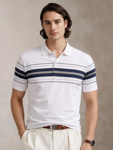 Adro Cotton Polo T Shirt for men | Regular Fit Printed Polo T-shirt | Short Sleeve White Polo Tshirt | Soft Fabric for Summer