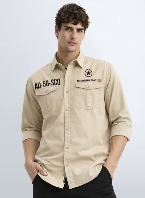 Upgrade your style with the ADRO Air Command cargo shirt for men in beige, designed with a bold military-inspired aesthetic for a rugged yet refined look. Featuring striking chest print graphics and structured utility pockets, this men’s cargo shirt adds character and functionality to your everyday outfit.